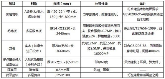 产品特点:参照德国DIN标准,结构标高96mm,完全满足运动木地板的保护功能、运动功能、技术功能,此结构适用于各类教学训练、表演等。适用于专业篮球场训练馆、篮球馆比赛馆、体育馆类运动木地板。